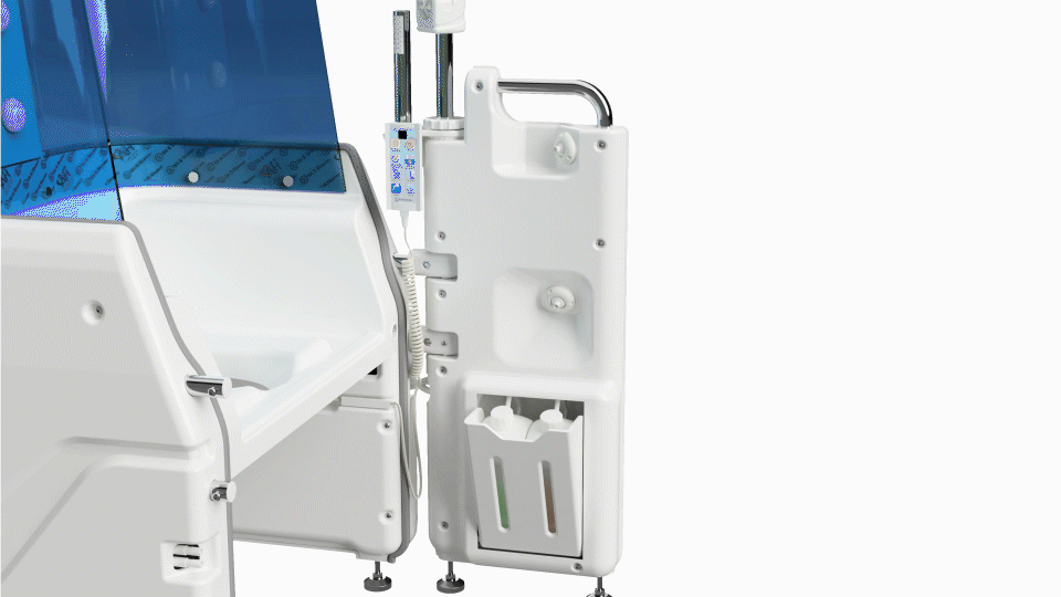 Sit & Shower can automate the entire shower process, including applying soap & shampoo or rinsing.
